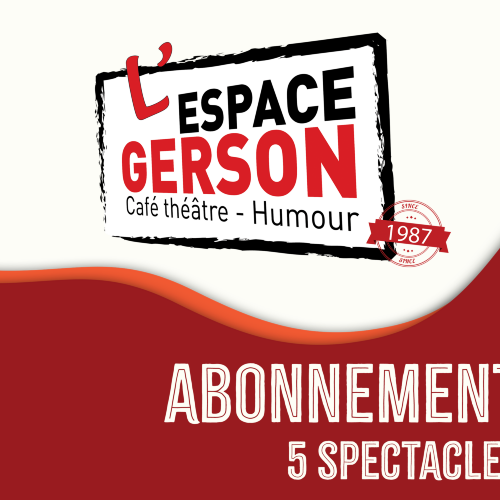Afficher le planAbonnement 65€ - 5 places abonnement est valable 1 an à partir de la date d'achat, possibilité de venir à 2 par soir de représentation l'abonnement est valable tous les jours d'ouverture (sauf soirée exceptionnelle, 31 déc, rodage...), occasionnellement un petit quota est négocié avec les productions Vous êtes nos invités les lundis pour les soirées découvertes et selection de festival Choississez le tarif abonné et tapez votre code sans oublier les tirets dans la case code de réduction Vous pouvez réserver en ligne http://espacegerson.com ou par téléphone 04 78 27 96 99