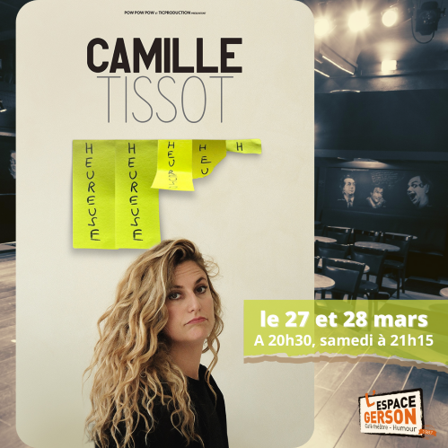 Afficher le planComédienne depuis dix ans, et ancienne chroniqueuse chez Canal plus, Camille lance son premier spectacle, Heureuse.